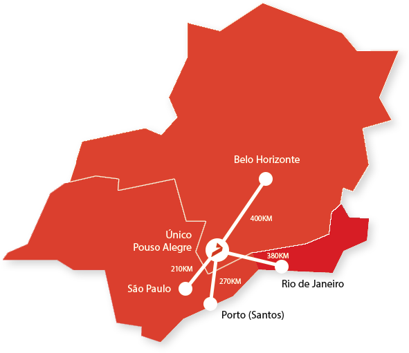 Base em Pouso Alegre/MG ás margens da Rodovia Fernão Dias BR 849, com localização estratégica ao lado do Porto Seco.